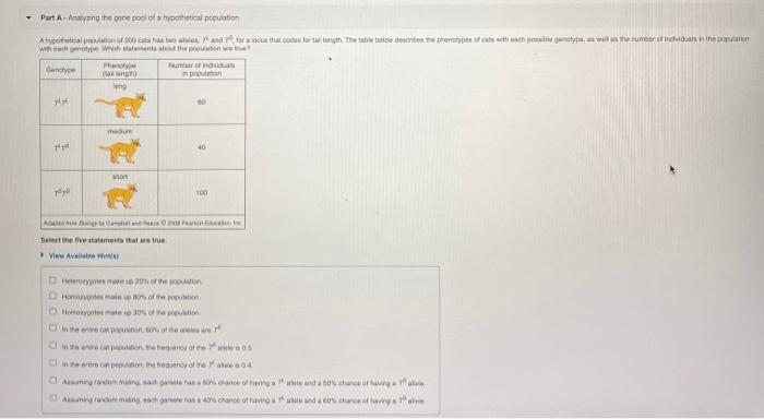 The Hardy-Weinberg analysis in the lower half of the figure models the result of random mating in the absence of selection drift mutation or migration eg in the absence of evolution. A Count the number of A and a alleles separately. Part a - analyzing the gene pool of a hypothetical population a hypothetical population of 200 cats has two alleles tl and ts for a locus that codes for tail length.